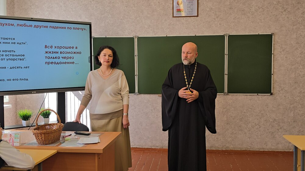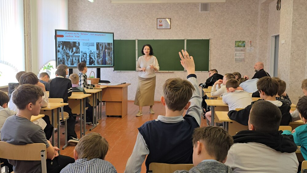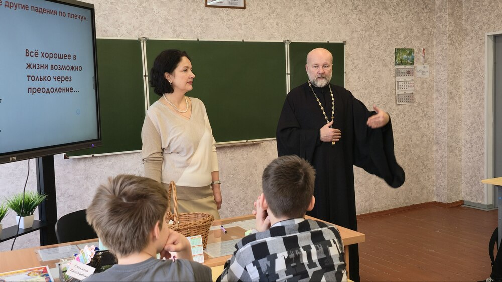 В ходе живого диалога гости обсудили со школьниками вопросы: зачем человек приходит в этот мир, как найти способ физического и ментального выживания в самых суровых условиях, сохранить душевное и духовное равновесие, как найти смысл жизни и быть устойчивым к внешним воздействиям.  Елена Николаевна Малышкина, как опытный лектор, помогла ребятам включиться в дискуссию и сформулировать свои мысли. Протоиерей Анатолий Медведюк, в свою очередь, раскрыл тему с точки зрения православного мировоззрения.