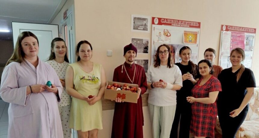 Священнослужитель поздравил руководство, персонал и всех пациенток с Праздником Пасхи, вручив им пасхальное яйцо.