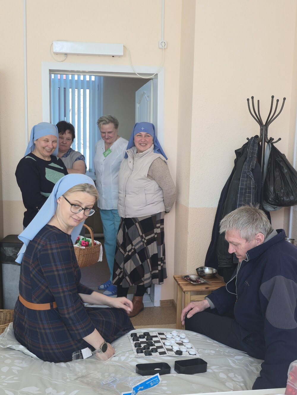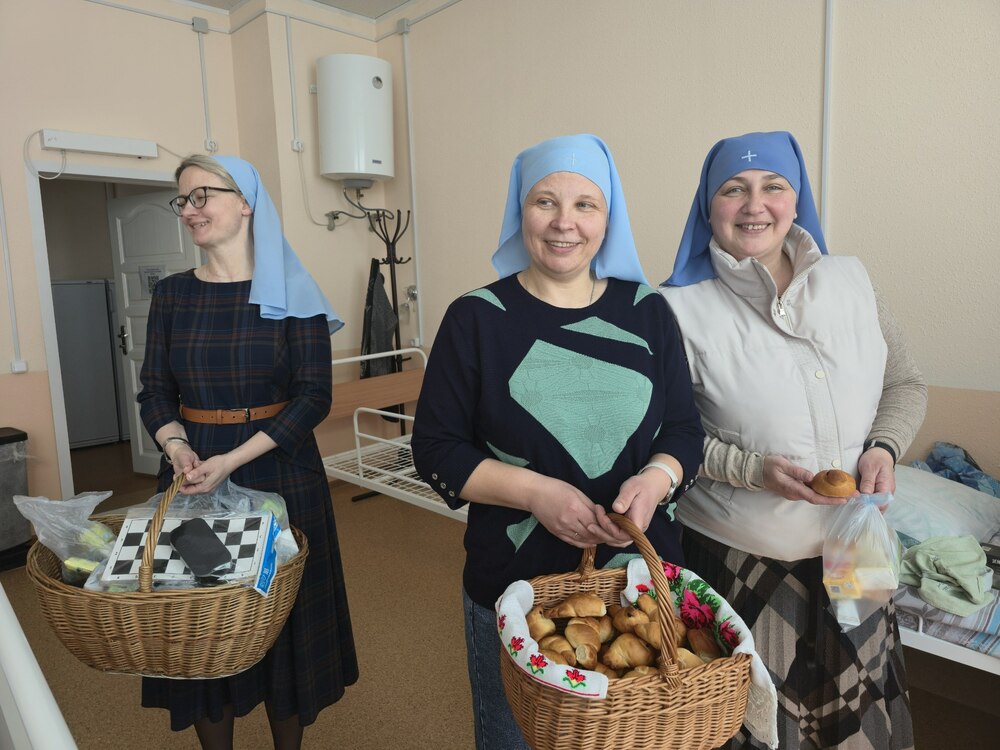 Испеченные из постного теста булочки в виде жаворонков, улыбки сестер и гостинцы от прихожан храма Воздвижения Креста Господня г.Высокое делают жизнь одиноких людей радостнее. Поинтересоваться их нуждами, подбодрить, принести необходимые вещи, нательный крестик, подержать за руку… Эти простые истины важны и нужны одиноким людям. А в этот раз удалось даже сыграть партию в шашки, которые сестры принесли в подарок.