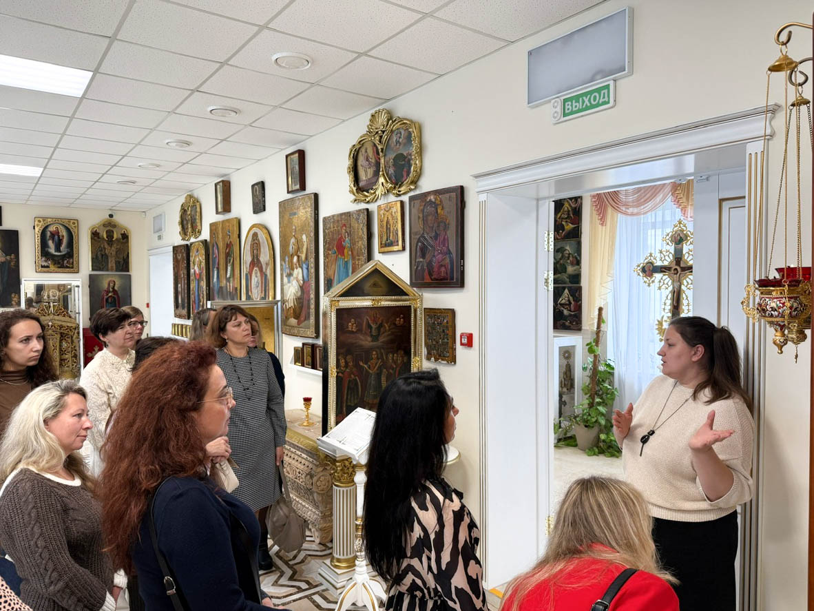По окончании семинара участников ждала кофе-пауза и экскурсия по домовому храму-музею в честь всех белорусских святых, которую провела Татьяна Александровна Давыденко, методист отдела религиозного образования и катехизации.