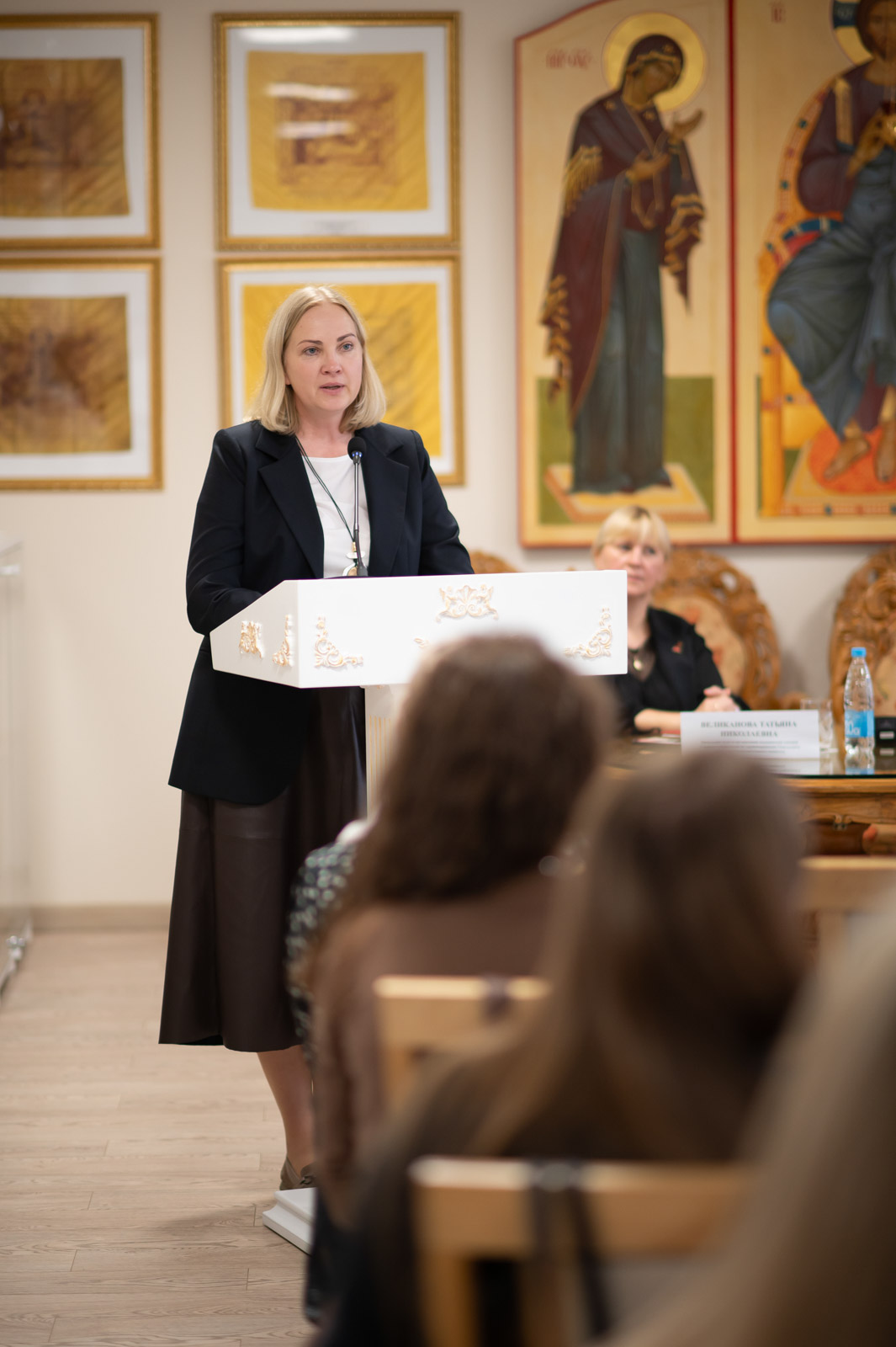 Кристина Игоревна Новоселова, соучредитель и член правления фонда «Покров», представила работу организации и рассказала о взаимодействии общественных структур с государством и Церковью в вопросах укрепления традиционных семейных ценностей и защиты жизни до рождения.