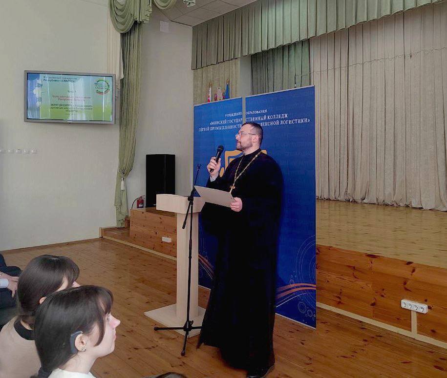 Спикером мероприятия выступил иерей Алексий Мосесов, клирик Прихода храма святителя Николая Японского в г. Минске Минской епархии, секретарь Синодального отдела по вопросам семьи, защиты материнства и детства Белорусской Православной Церкви. Участниками встречи стали студенты колледжа.