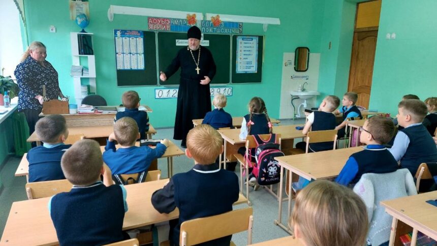 Иерей Александр Кононович провел беседу с учащимися 3-х классов средней школы № 2 г. Городка на тему «Все начинается с Семьи», после беседы было сделано фото на память.