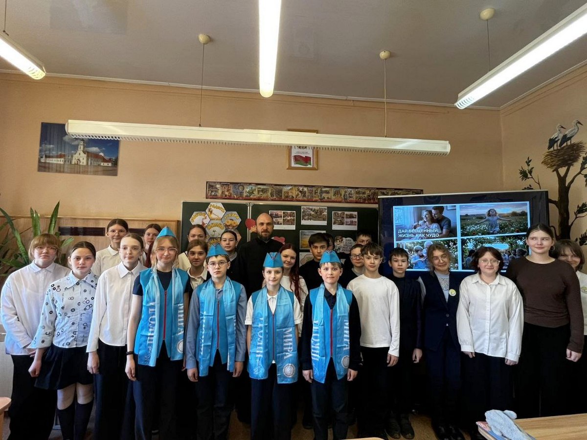 В рамках месячника по профилактике суицидального поведения и формированию ценностного отношения к жизни протоиерей Вячеслав Енухов, настоятель храма Рождества Христова г. Орши, провел беседу с учащимися 6 класса ГУО «Средняя школа № 8 г. Орши» на тему: «Ценность жизни. Семейные ценности».